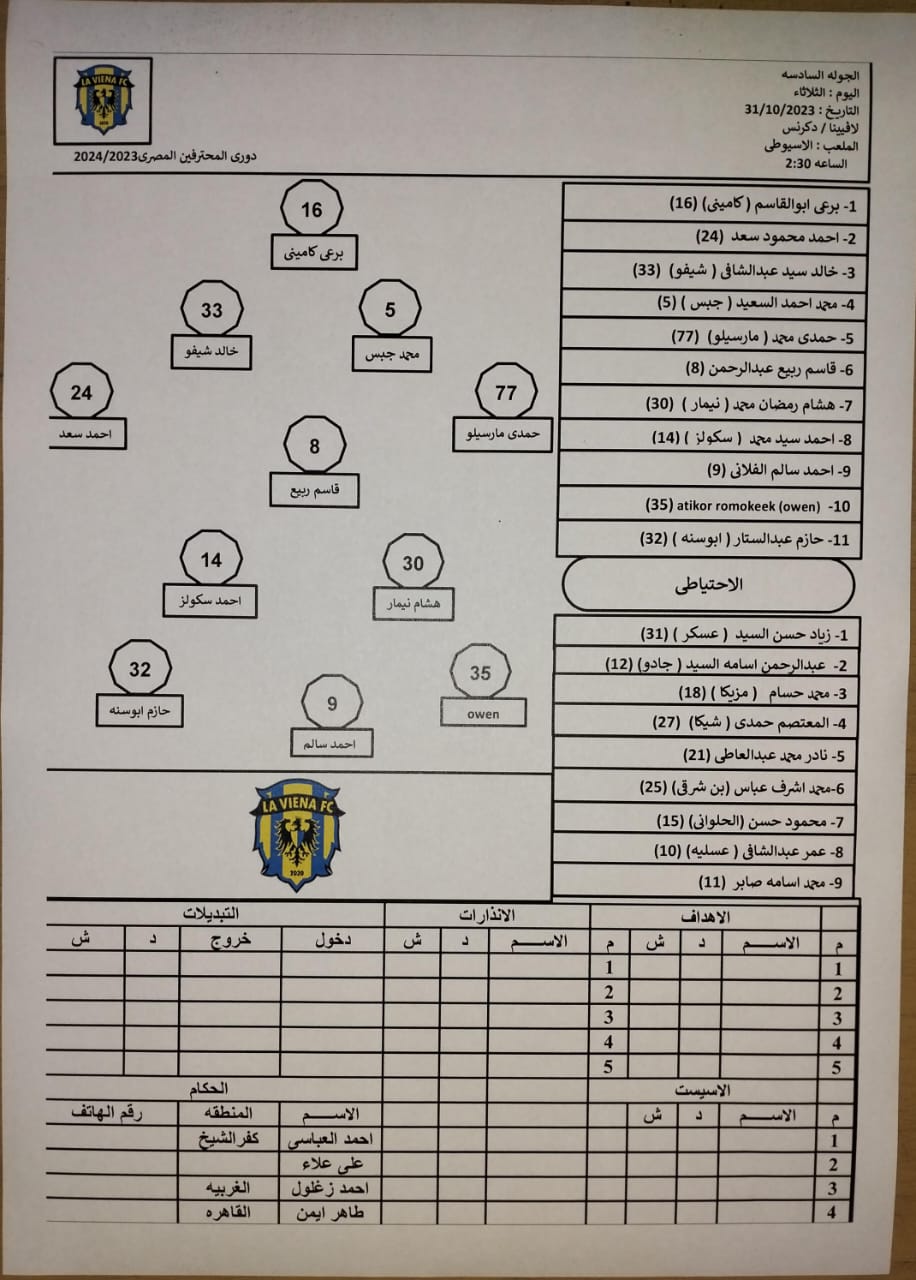 - في خط الدفاع : محمد جبس خالد شيفو حمدي مارسيلو _ أحمد سعد .
