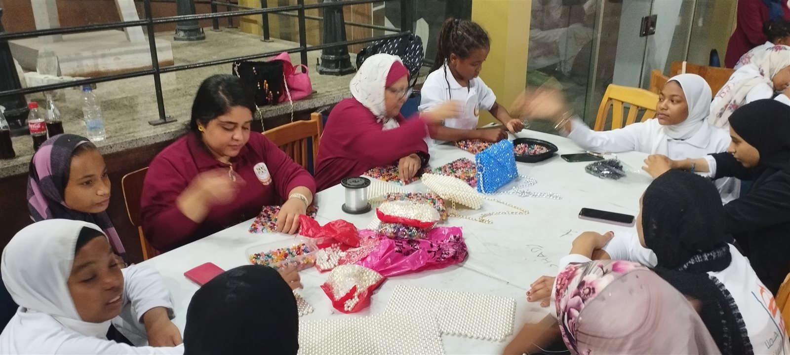 كما استمرت فعاليات كل من ورشة إعادة التدوير للمدربة نجوى عبد العزيز، وورشة تصميم حقائب بالشبك للمدربة نجلاء شحاته، وورشة المشغولات اليدوية بالخرز لمنى عبد الوهاب، والخيامية لعماد عاشور، وقامت المدربة إيمان مجدي بتعليم الأطفال كيفية تصميم حقيبة من الجلد وتطريزها، بينما استكمل الفنان ناصر عبد التواب مراحل تصنيع العروسة القفازية.