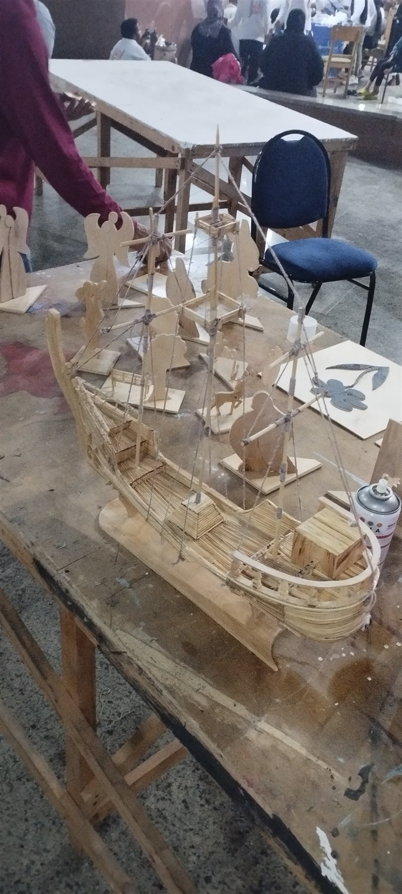 مضيفا أن طوال فترة التدريب سيتم تعريف الأطفال بأنواع الخشب، وطبيعته، وكيفية الرسم على سطحه وتفريغه لعمل تصميمات مختلفة كتصنيع بازل متعدد المقاسات، أو تصميم مركب صيد، مع طلاء الأعمال بالورنيش كي تتضح التفاصيل الأصلية.
