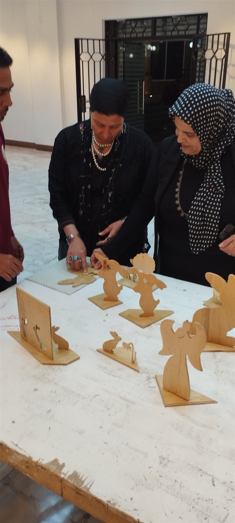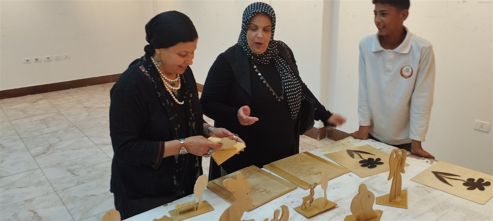 كما شاهدتا نتاج ورشة تعليم الأركت الخشبي، التى يقدمها حسنى إبراهيم الذي شرح ما صنعه الاطفال بايديهم من براويز، وارانب تجميع.
