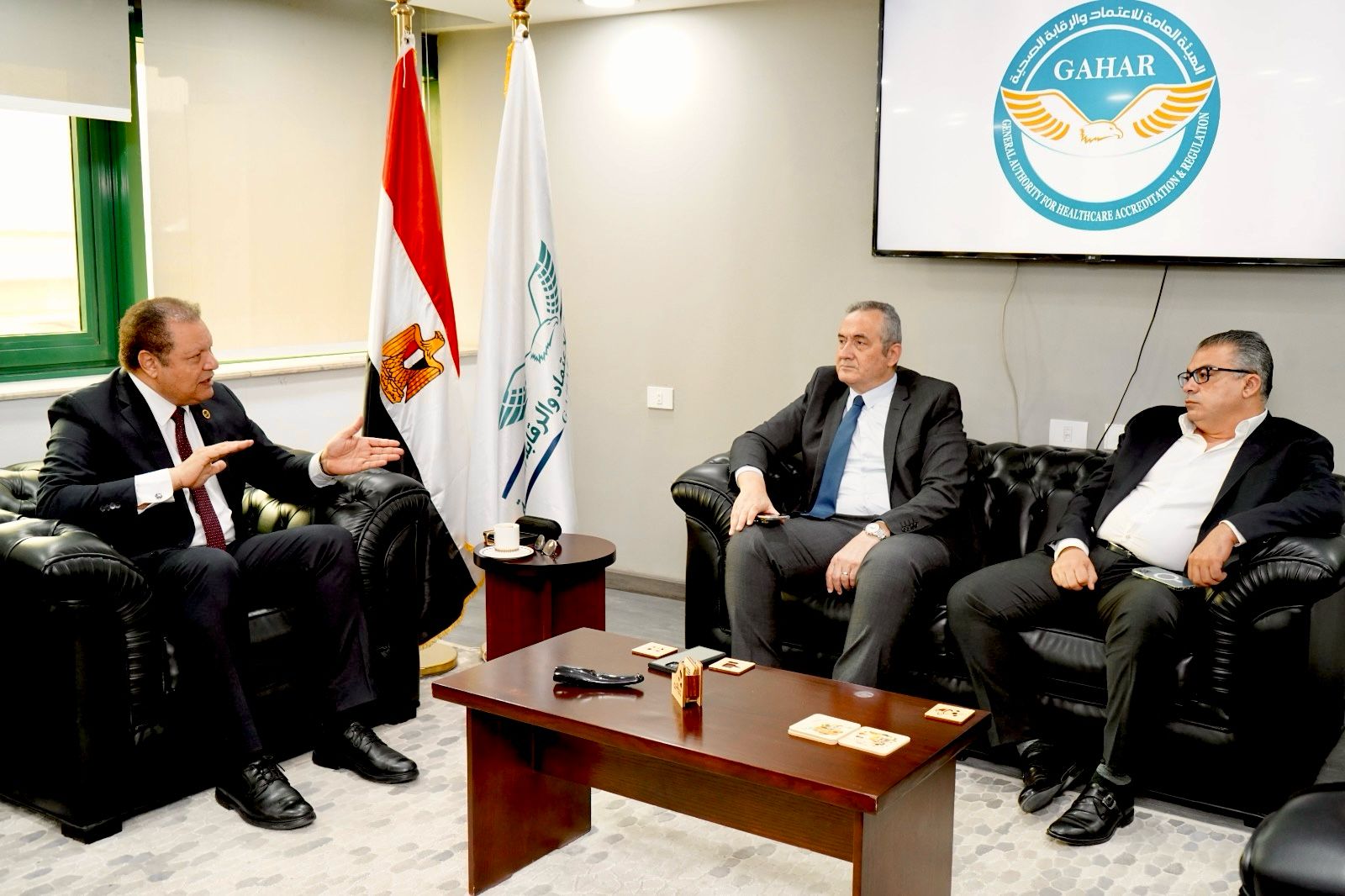 اجتمع، اليوم، د. أحمد طه، رئيس الهيئة العامة للاعتماد والرقابة الصحية (GAHAR)، مع الدكتور محمد مصطفى عبدالغفار، رئيس هيئة المستشفيات والمعاهد التعليمية، والدكتور على الأنور، عميد كلية الطب بجامعة عين شمس ، وذلك لمناقشة آليات تحفيز المستشفيات التعليمية والجامعية للبدء في التدريب والتأهيل للحصول على الاعتماد من "جهار" استعدادًا لدخولها ضمن منظومة التأمين الصحي الشامل.