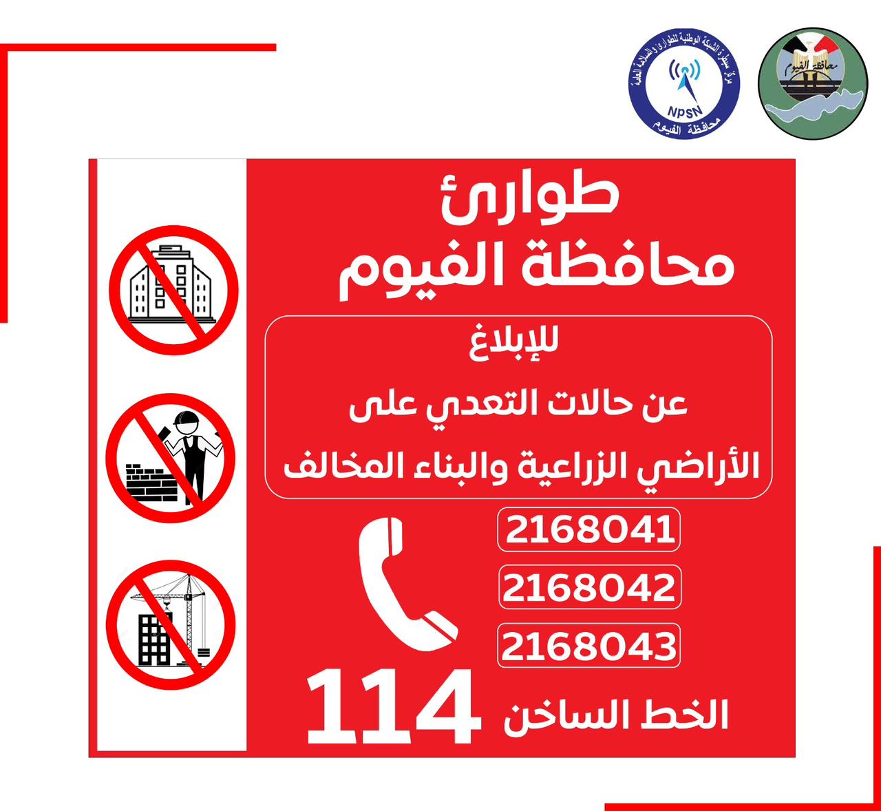 خصصت المحافظة خطوط للاتصال عدة من خلالها للإبلاغ عن التعديات على الأراضي الزراعية ومخالفات البناء وهي: 084/2168041 أو 084/2168042 و 084/2168043، بالإضافة إلى الخط الساخن (114).