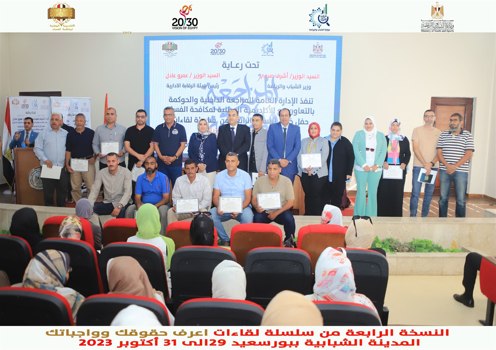 انتهت النسخة الرابعة من سلسلة لقاءات "اعرف حقوقك وواجباتك" بنجاح في مدينة بورسعيد، وذلك في ضوء بروتوكول التعاون الموقع بين وزارة الشباب والرياضة وهيئة الرقابة الإدارية. تمت هذه الفعالية برعاية كريمة من الأستاذ الدكتور أشرف صبحي، وزير الشباب والرياضة، والسيد الوزير عمرو عادل، رئيس هيئة الرقابة الإدارية.