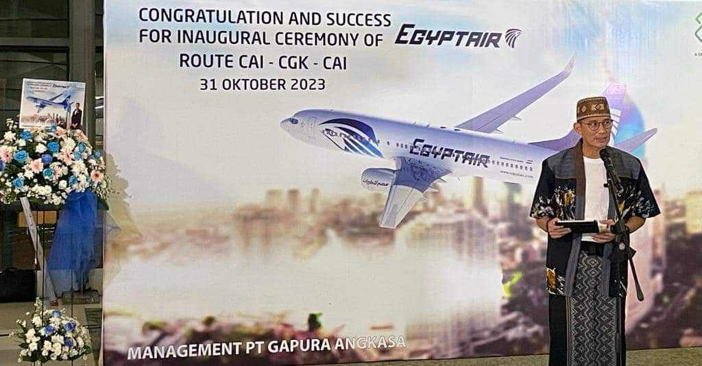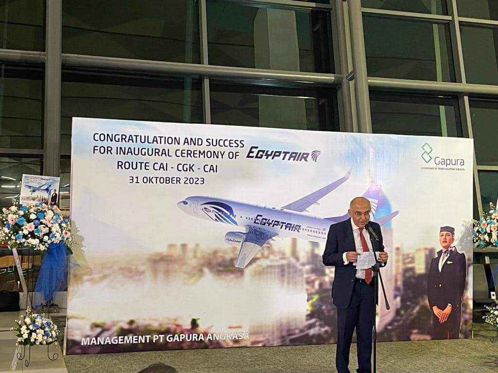 في كلمته، رحب السفير المصرى بإعادة تشغيل خط الطيران المُباشر لشركة مصر للطيران بين العاصمتين المصرية والإندونيسية، مُشيراً إلى أهمية هذه الخطوة في دعم العلاقات التاريخية والاقتصادية والسياحية المُتبادَلة بين الجانبين، لا سيما في ضوء اهتمام قطاع كبير من الإندونيسيين بزيارة المعالم السياحية المصرية، وبالأخص الدينية منها، فضلاً عن تيسير رحلات الطُلاب الإندونيسيين الدارسين في مصر.