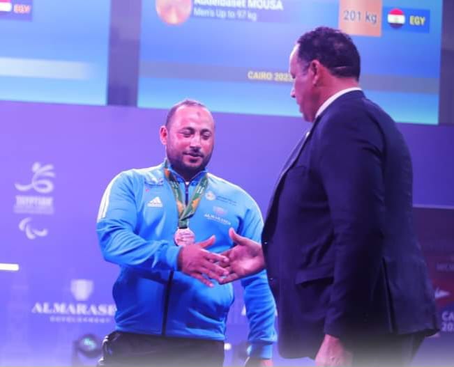 حرص الدكتور أشرف صبحي وزير الشباب والرياضة، علي تهنئة اللاعب مندي أحمد عبدالعظيم واللاعب عبد الباسط موسى بعد تتويجهما بفضية وبرونزية كأس العالم لرفع الأثقال البارالمبي، والتي تستضيفها مصر خلال الفترة من (٣-٥) نوفمبر الجاري، على صالة حسن مصطفى بمدينة السادس من أكتوبر، وتعد هذه البطولة أحد البطولات التي تسهم في التصنيف العالمي للاعبين.
