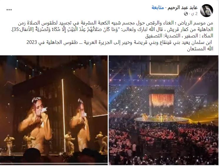 وسط تجاهل القائمين على موسم الرياض، للأحداث المآساوية في غزة، واستمرار الغناء والرقص والموسيقى الصاخبة، المصاحبة بالتصفيق والهتافات الحارة، افتتح المطرب السعودي عبدالمجيد عبدالله، أولى حفلات النسخة الرابعة، أمس الخميس، على خشبة مسرح بوليفارد وورد بالمملكة العربية السعودية، متخطيًا صرخات الآلم من قلب فلسطين.