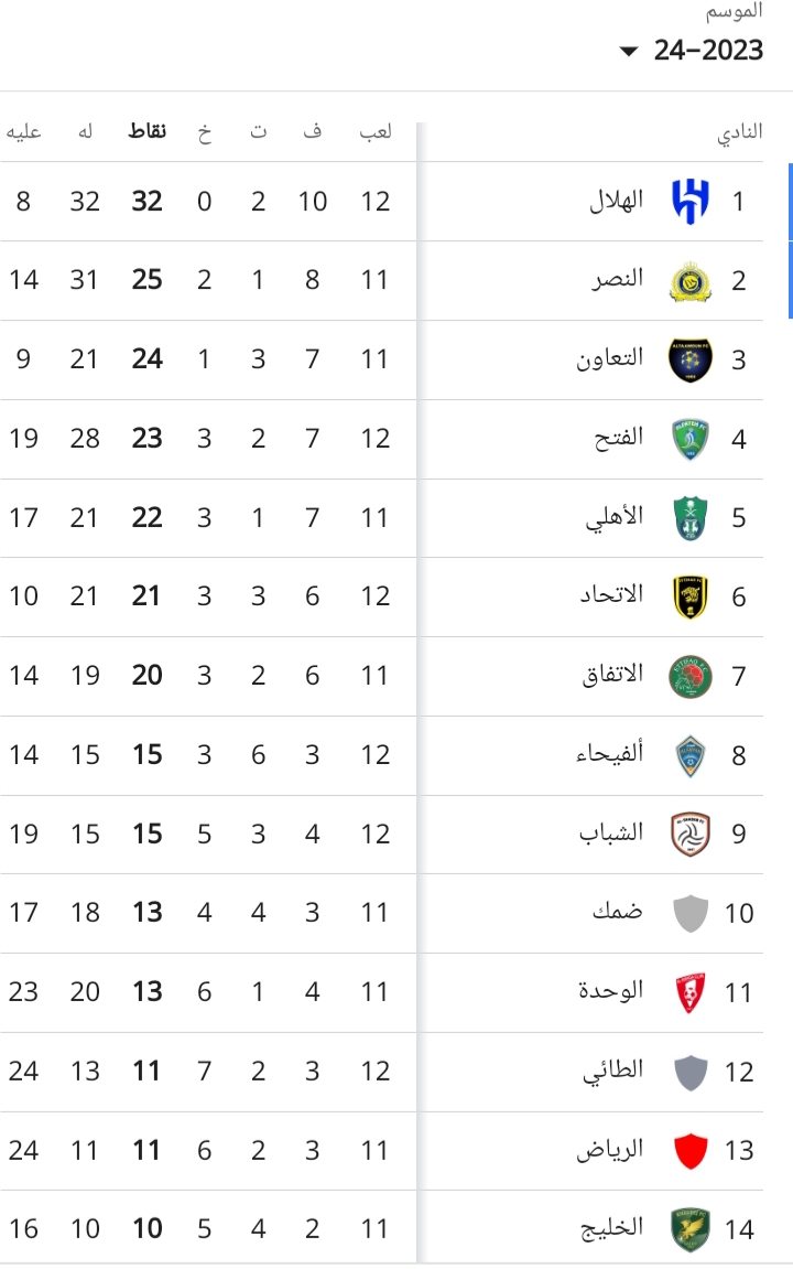ترتيب الدوري السعودي