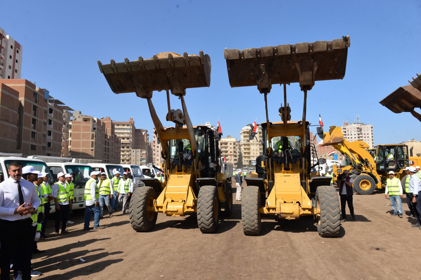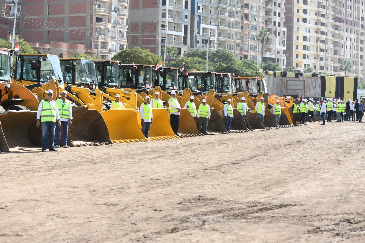 وزير التنمية المحلية ومحافظ الدقهلية يشهدان اصطفاف المعدات الهندسية للمراكز والمدن