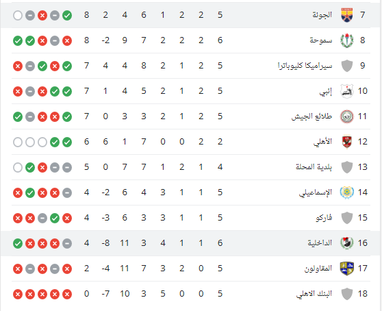 يحتل الجونة المركز الخامس بترتيب الدوري المصري الممتاز برصيد 8 نقاط، بينما يحل الداخلية في المركز الـ 16 بـ 4 نقاط.