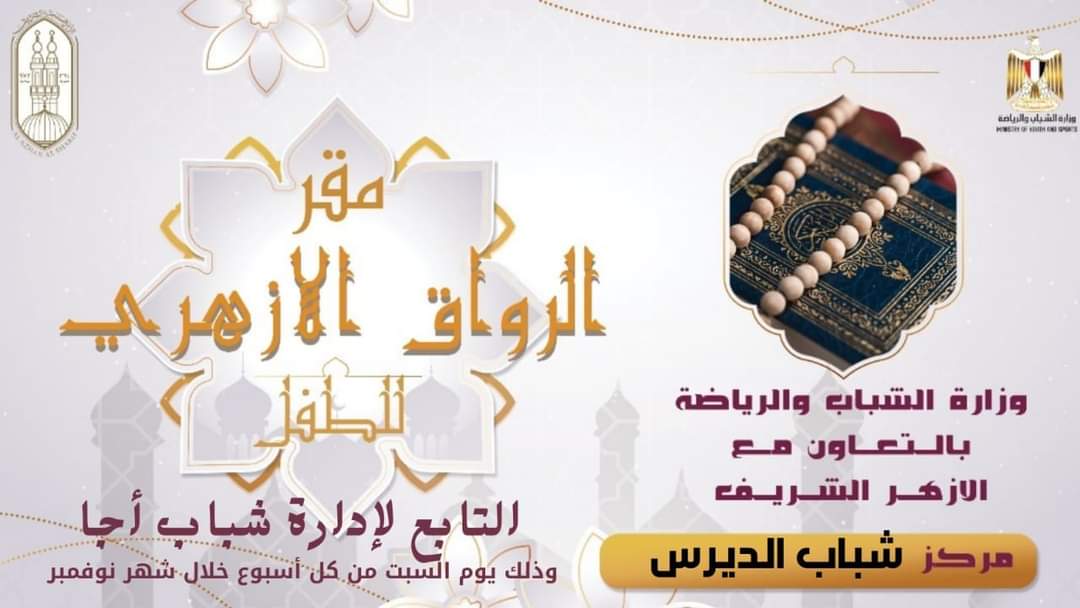 اطلقت وزارة الشباب والرياضة من خلال الإدارة المركزية لتنمية النشء-الإدارة العامة لرعاية الموهوبين والمبدعين، سلسلة من الندوات للنشء ، ضمن فعاليات الموسم الثاني من برنامج "الرواق الأزهري للطفل والأسرة " بعدد من المحافظات علي مستوي الجمهورية، بالتعاون مع الأزهر الشريف .