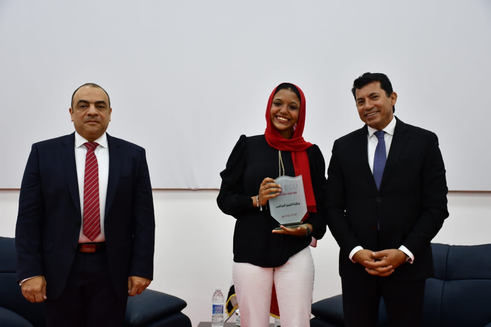 وعلى هامش الملتقي قام وزير الشباب والرياضة بتكريم الأبطال الرياضيين خريجي الجامعة المصرية الصينية.