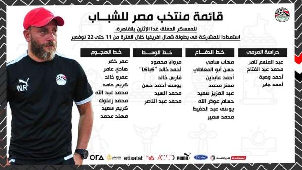 قائمة منتخب مصر للشباب استعدادا للمشاركة في بطولة شمال إفريقيا