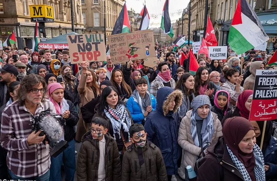 وانطلقت المسيرات المؤيدة لفلسطين في 40 بلدة ومدينة في جميع أنحاء المملكة المتحدة – حيث سار الآلاف للمطالبة بوقف إطلاق النار.