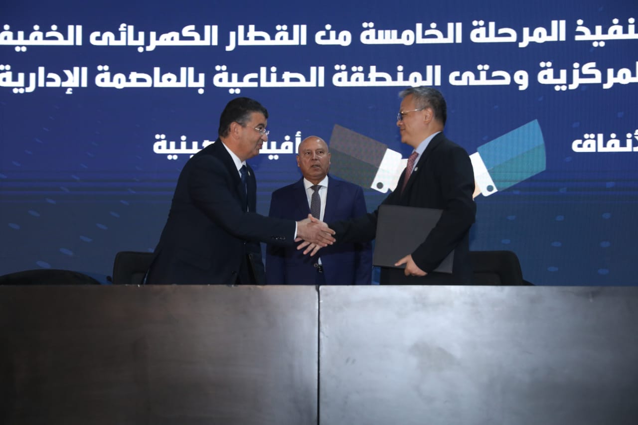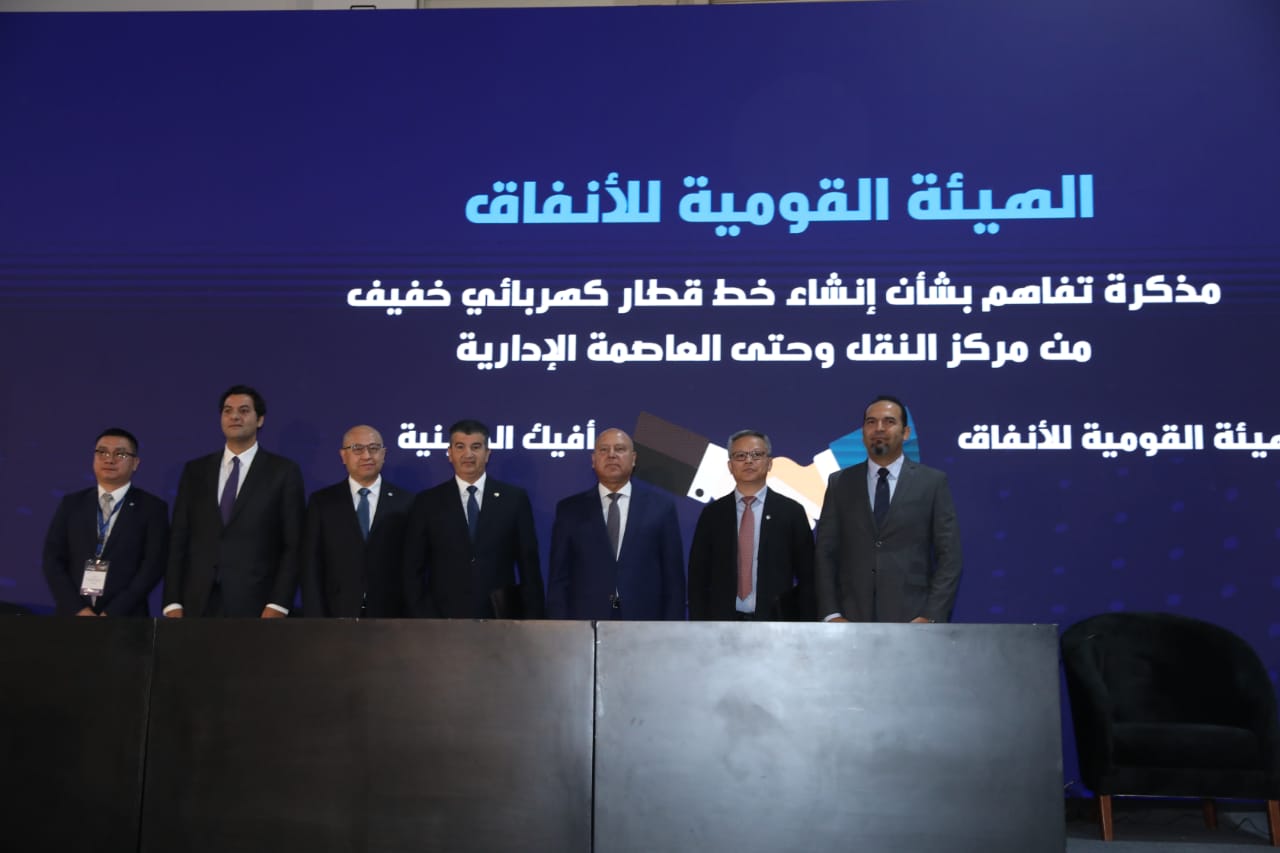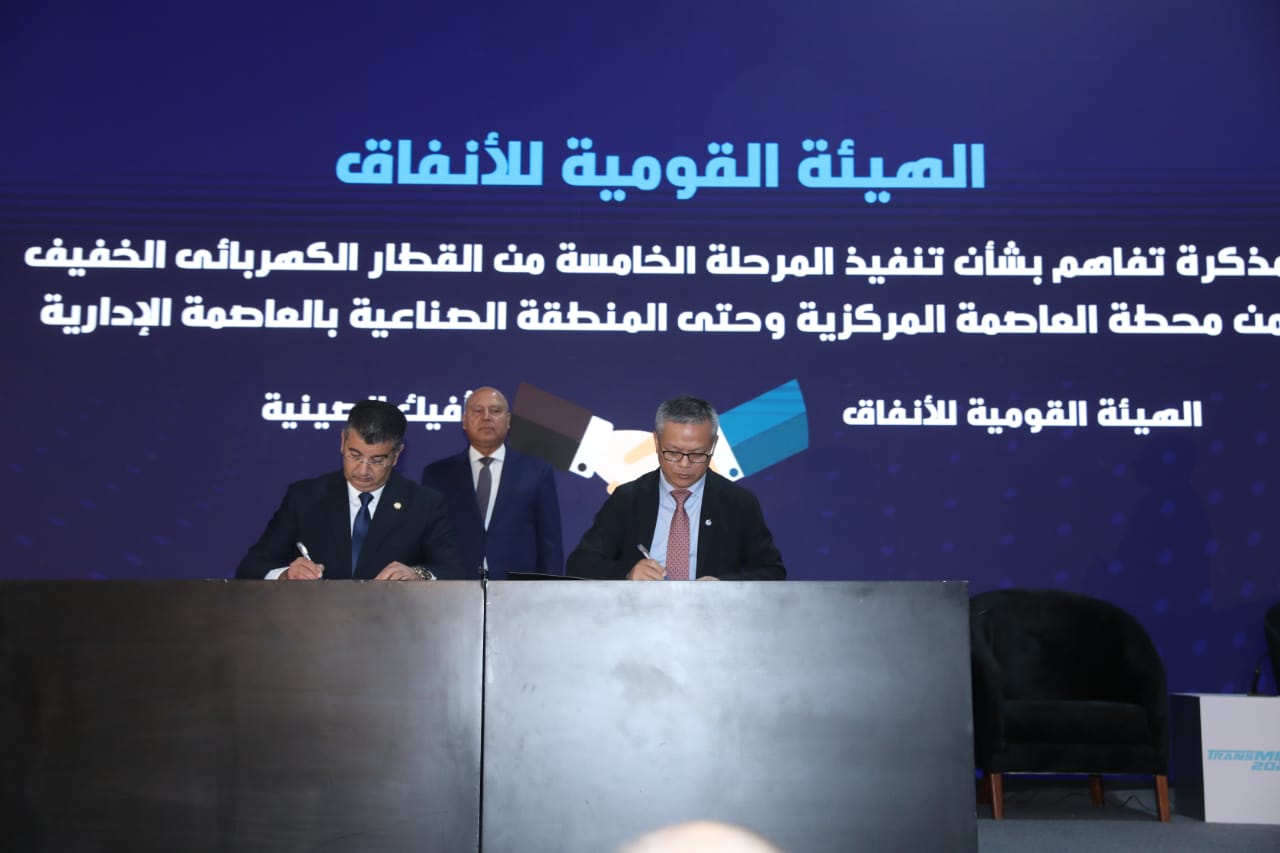 وشهد الفريق مهندس وزير النقل توقيع مذكرة تفاهم بين الهيئة القومية للأنفاق وشركة أفيك انترناشيونال الصينية (أفيك إنتل) لتنفيذ المرحلة الخامسة من مشروع سكك حديد العاشر من رمضان (القطار الكهربائي الخفيف LRT) بطول 5.5 كم وعدد (1 محطة) لخدمة المنطقة الصناعية المخطط تنفيذها بالعاصمة الادارية بعد محطة العاصمة المركزية "المحطة النهائية للمرحلة الثالثة للمشروع" ، وقد قام بالتوقيع من الجانب المصـرى الدكتور مهندس/ طارق جويلى رئيس الهيئة القومية للأنفاق ومن جانب شركة أفيك إنتل الصينية يو لى – رئيس شركة أفيك الصينية .