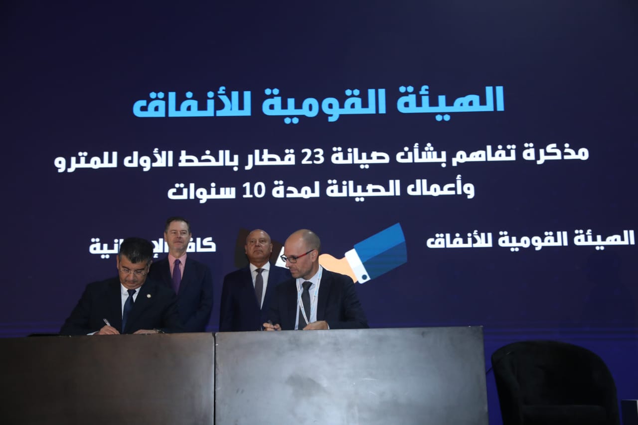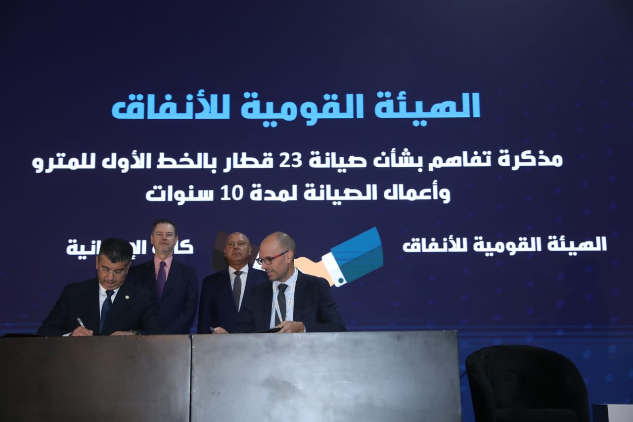 كما شهد وزير النقل توقيع مذكرة التفاهم بين الهيئة القومية للأنفاق وشركة كاف الاسبانية لتحديد شروط التوقيع لتمديد عقد إعادة تأهيل وصيانة وتطوير وتحديث عدد (23) قطار للخط الأول لمترو الأنفاق والموقع مع الشركة الأسبانية ليشمل صيانة هذه القطارات لمدة 10 سنوات شاملة قطع الغيار ، حيث قام بالتوقيع من الجانب المصـرى الدكتور مهندس/ طارق جويلى رئيس الهيئة القومية للأنفاق ومن جانب الشركة الأسبانية السيد / خافيير مارتينيز الرئيس التنفيذي للشركة.