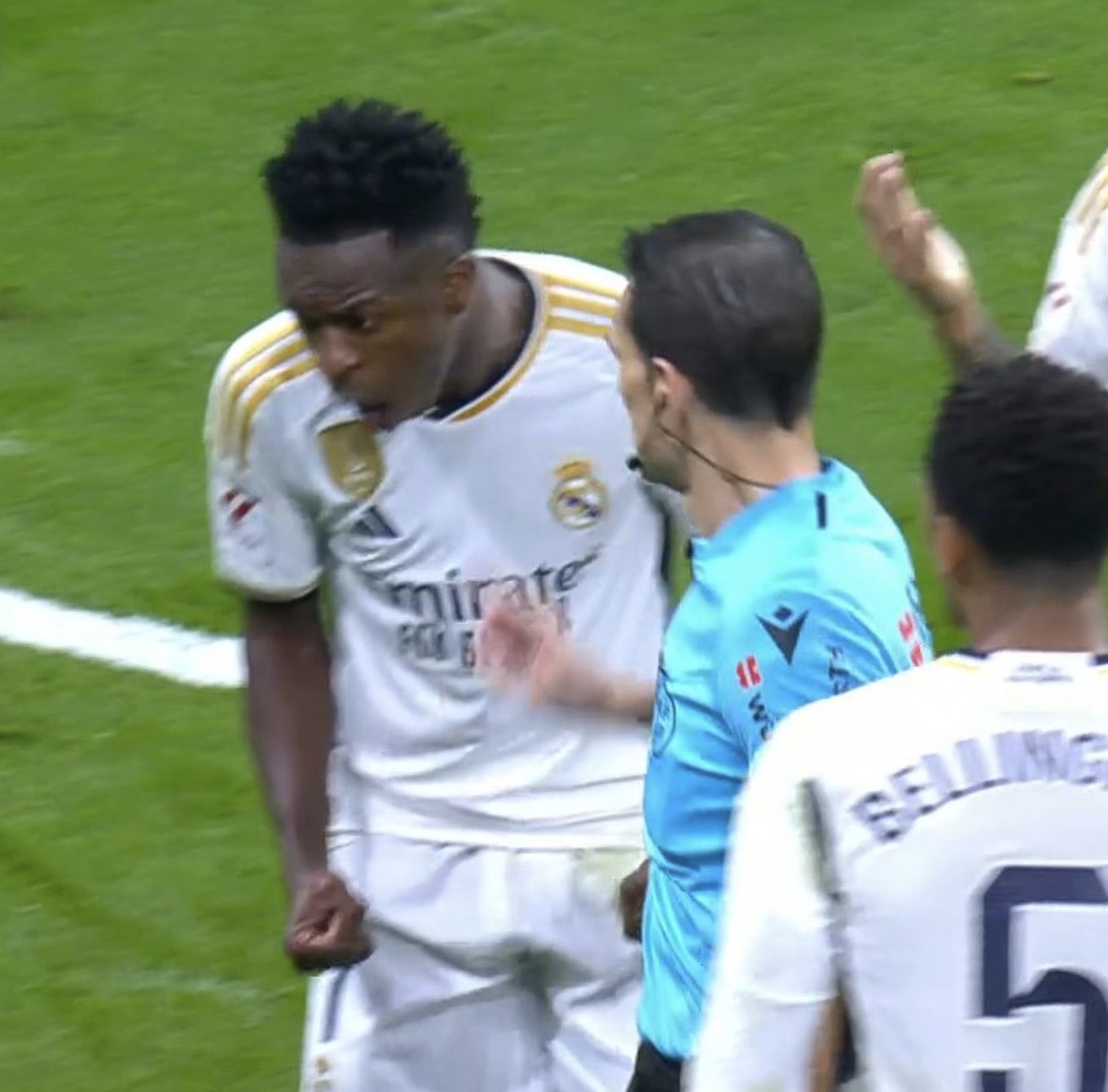 فينيسيوس دخل في صدام مع الحكم رغم محاولة زميله الأصغر منه “بيلينجهام” تهدئته، بعد رفضه إعطائه مخالفة، بالإضافة لدخوله في صدام حاد مع حارس رايو فاليكانو الذي قال له لنتقابل خارج الملعب انا وأنت، ليعلق الحارس ديميتريفسكي بعد نهاية المباراة على تلك اللقطة بتصريحات هادئة حول صدام فينيسيوس معه بإنه لاعب عظيم، وتلك مواقف طبيعية عندما تكون اللعبة متوترة مضيفا: من الطبيعي أن يكون هناك احتكاك، مثل ذلك الذي حدث بين بيلينجهام وسيس، هذه أمور غير مهمة، لا ينبغي لنا أن نعطي أهمية لذلك.