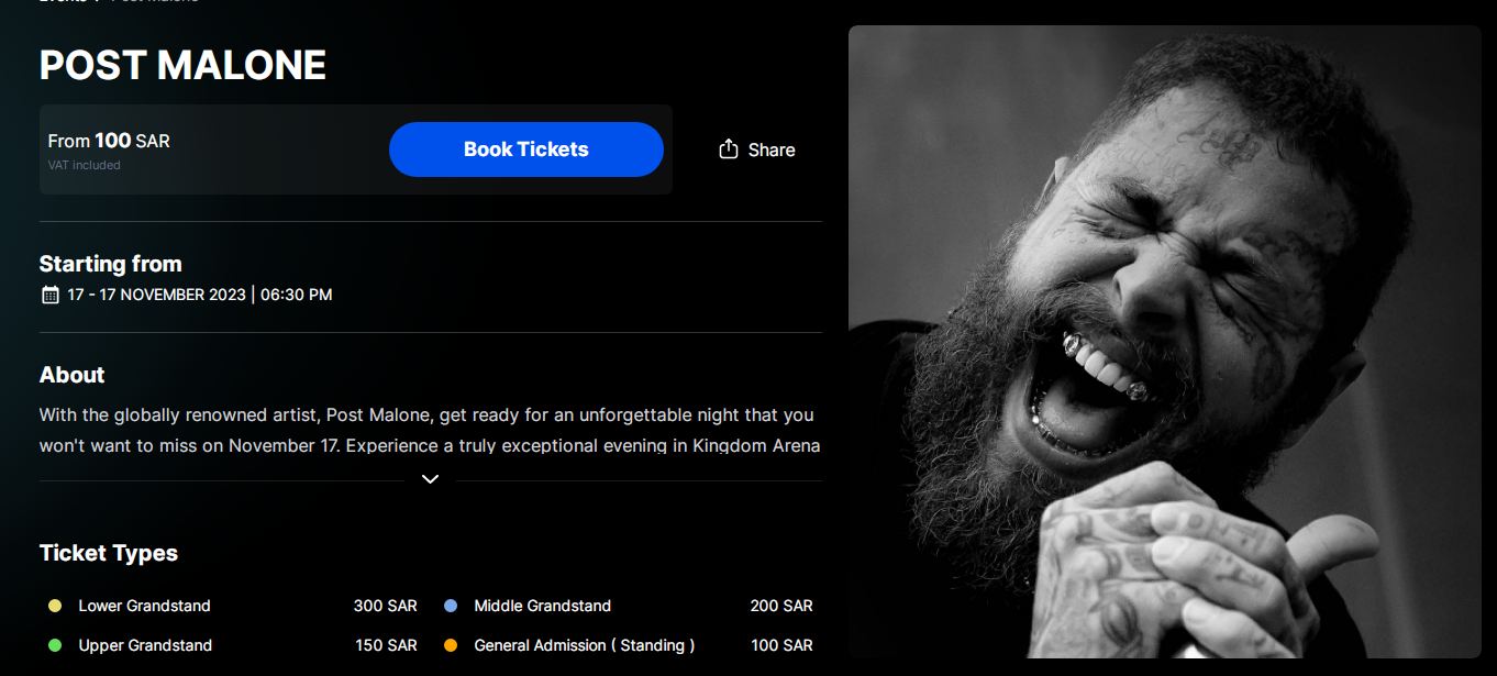 أسعار تذاكر حفل بوست مالون في موسم الرياض 2023: