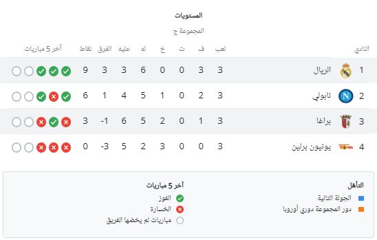ترتيب مجموعة ريال مدريد في دوري أبطال أوروبا