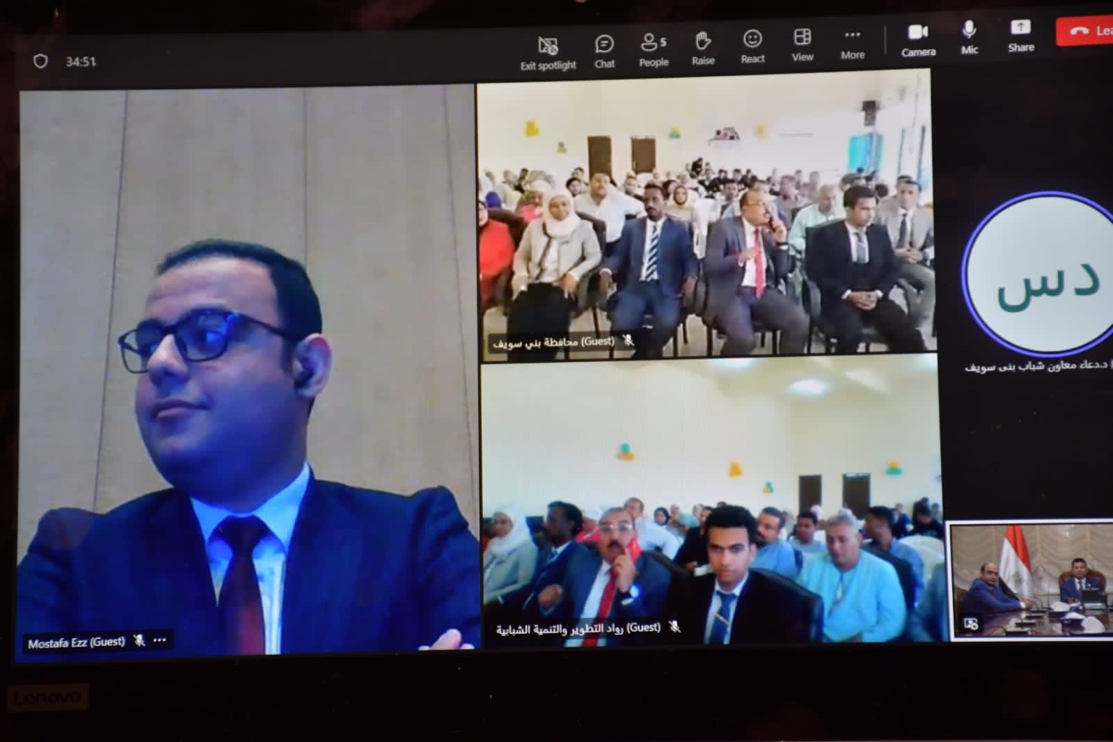 دشن الدكتور أشرف صبحي وزير الشباب والرياضة، عبر تقنية الإتصال المرئي من مقر الوزارة بالحي الحكومي بالعاصمة الإدارية الجديدة، الكيان الشبابي رواد التطوير و التنمية الشبابية بمحافظة بني سويف، بحضور قرابة ١٠٠ شاب وفتاة من محافظات (الفيوم، المنيا، بني سويف).