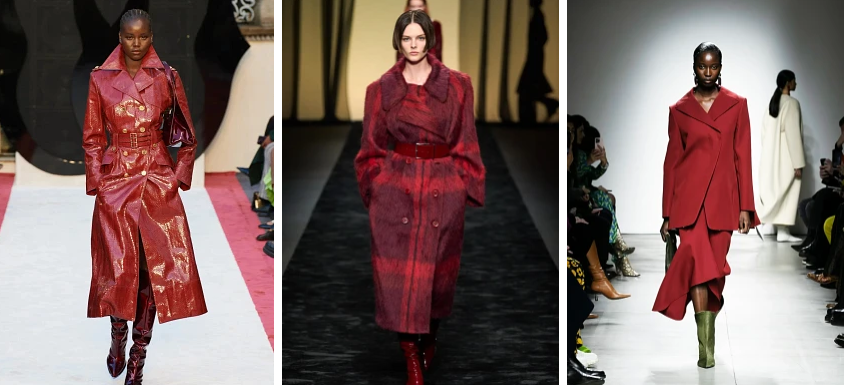 يوحي الأحمر الداكن بالأنوثة والأناقة، فهو من الألوان التي تحرص كل إمرأة على توافر قطعة على الأقل في خزانتها بهذا اللون الجذاب، فيمكنك اختياره كفستان سهرة أو معطف جلد.