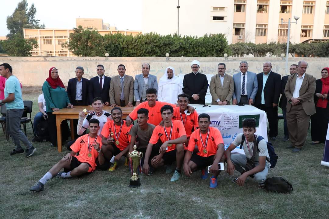 كرم الدكتور سلامة داود، رئيس جامعة الأزهر، والدكتور محمد الشربيني، نائب رئيس الجامعة لشئون التعليم والطلاب، والدكتور محمد فكري خضر، نائب رئيس الجامعة لفرعي البنات والوجه البحري، ومحمد عبد الخالق، أمين عام الجامعة، والدكتور عمرو هلال، مدير المركز الهندسي بالجامعة؛ الطلاب الفائزين في دوري منافسات كرة القدم التي نظمتها الإدارة العامة لرعاية الطلاب بالجامعة.