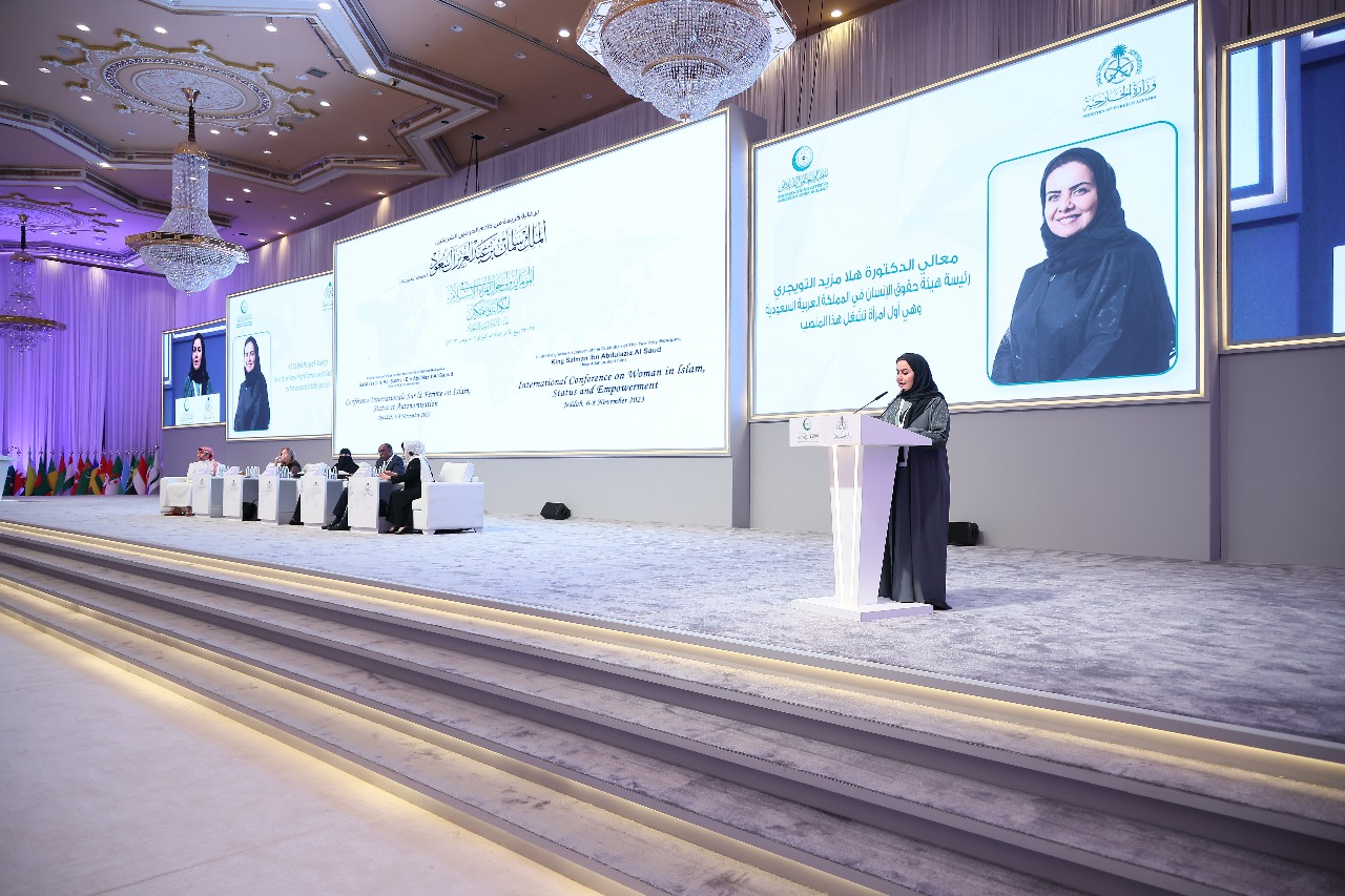 من جهتها أوضخت المديرة التنفيذية للهيئة الدائمة المستقلة لحقوق الإنسان التابعة لمنظمة التعاون الإسلامي الدكتورة نورة الرشود أنَّ المرأة على المستوى العالمي نالت الكثير من حقوقها بعد المراجعات العميقة وعملية التحديث التي اندرجت فيها أغلب دول العالم في خلال العقود الأخيرة.