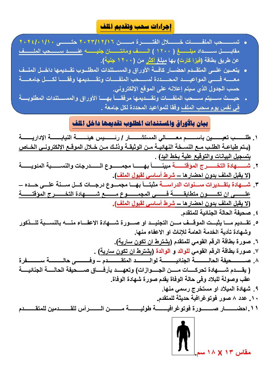 هذا وأكدت هيئة النيابة الإدارية أنه يشترط إدخال البيانات المطلوبة للمتقدم بشكل صحيح ودقيق، وأن يتم طباعة وثيقة التعارف كاملة من خلال ذات الموقع بعد استيفاء جميع البيانات.