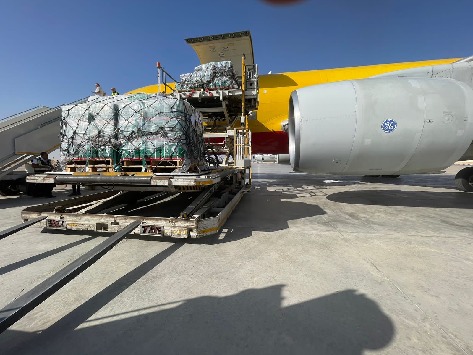 وصلت إلى مطار العريش الدولي اليوم، الطائرة الإغاثية السعودية الأولى، تحمل على متنها مساعدات إغاثية متنوعة شملت مواد غذائية وإيوائية تبلغ 35 طنا، تمهيدا لنقلها إلى المتضررين داخل قطاع غزة.