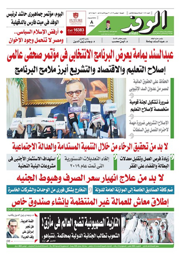 عبدالسند يمامة يعرض البرنامج الانتخابي في مؤتمر صحفي عالمي