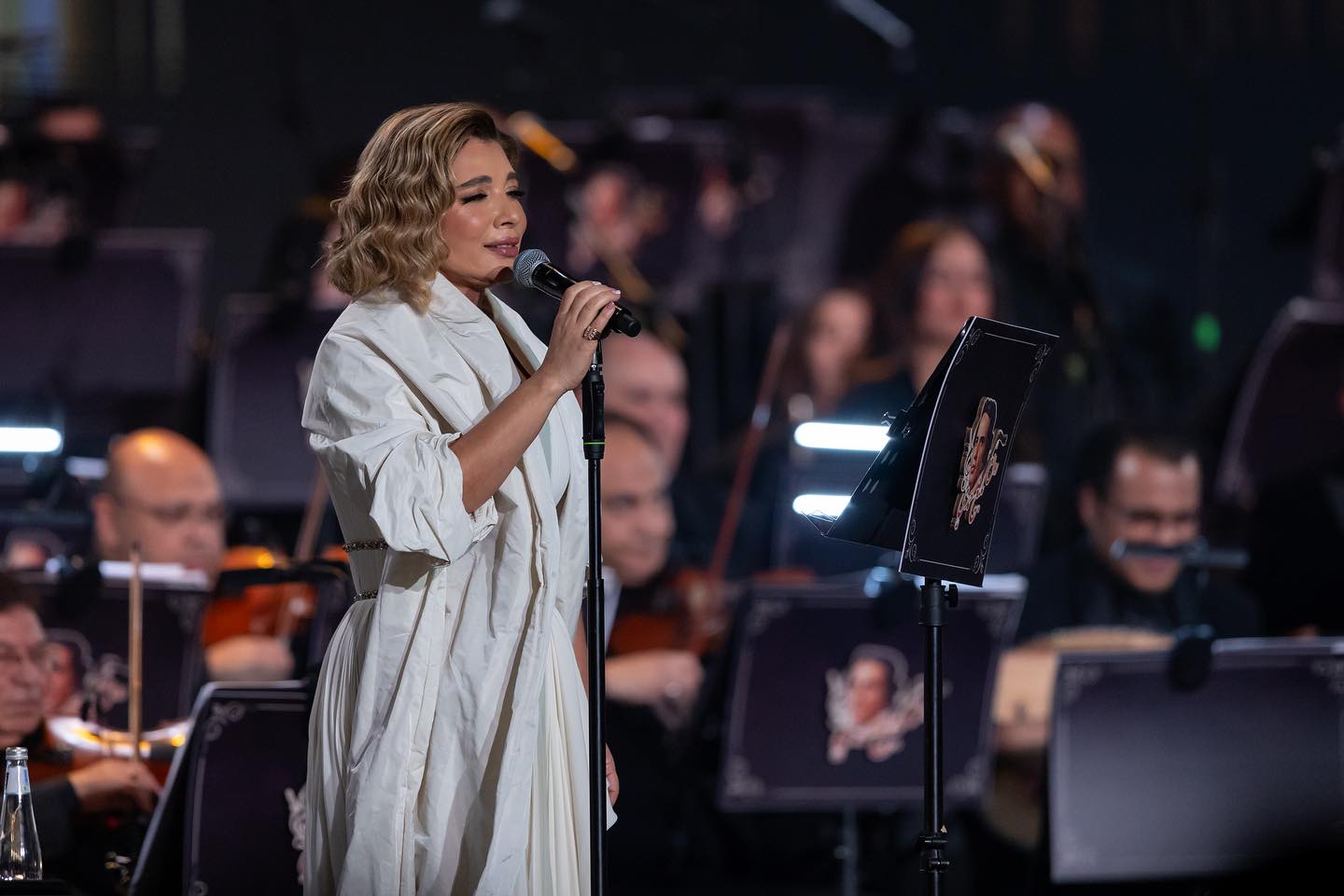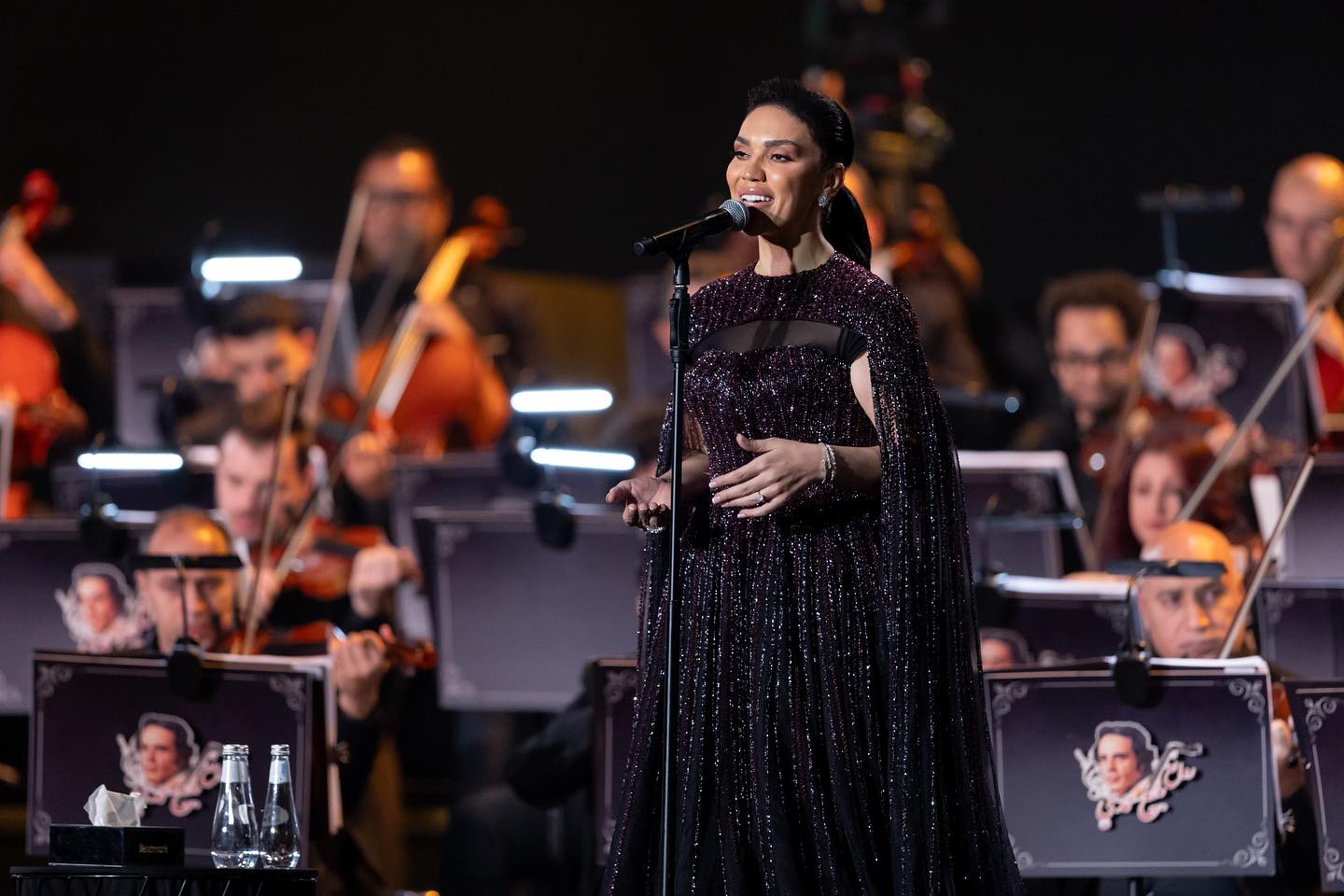 وصعدت الفنانة مي فاروق بإطلالة طربية مميزة برائعة ألف ليلة وليلة لـ أم كلثوم،