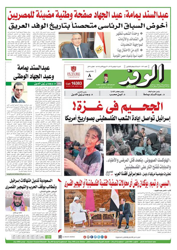 نشر جريدة الوفد اليومية الورقية في عددها الصادر، غدًا السبت، العديد من الموضوعات والتقارير الإخبارية المهمة، أبرزها: "عبدالسند يمامة: عيد الجهاد صفحة وطنية مضيئة للمصريين".