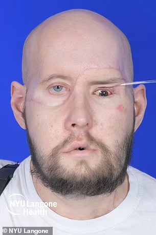 وأصبح المخضرم في أركنساس، البالغ من العمر 46 عامًا، أول مريض في العالم يتم زرع مقلة عين جديدة له خلال عملية جراحية استمرت 21 ساعة - بعد حرق نصف وجهه أثناء حادث كهربائي.