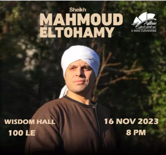 تستقبل ساقية عبدالمنعم الصاوي، حفل إنشاد ديني للشيخ محمود التهامي، وذلك في الثامنة مساء الخميس المقبل وسعر التذكرة 100 جنيه.