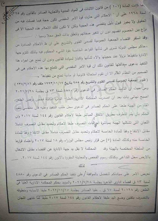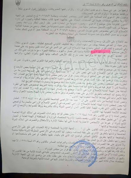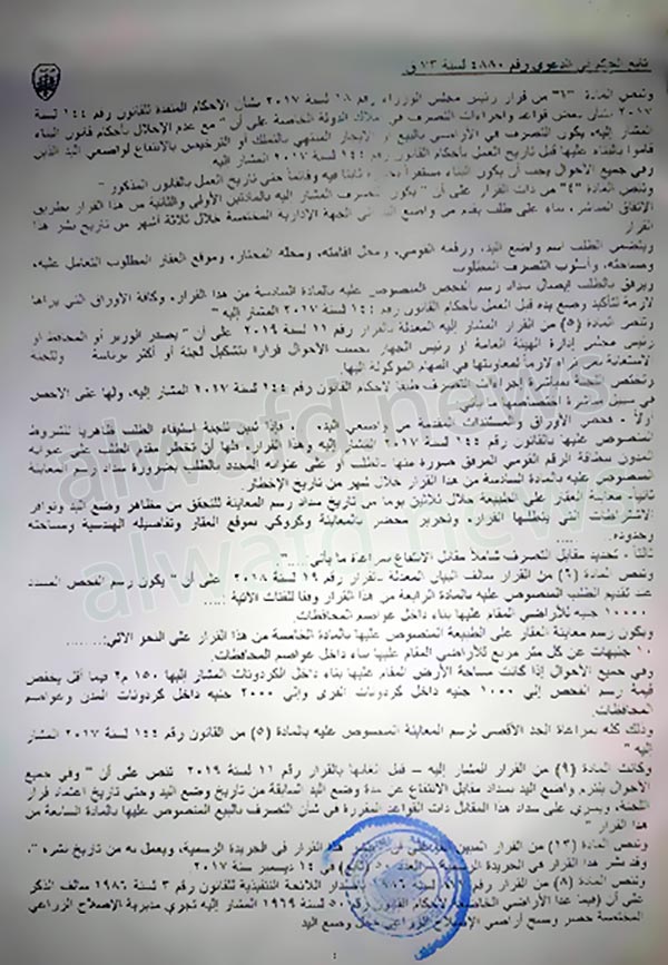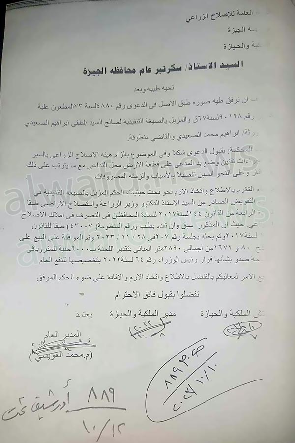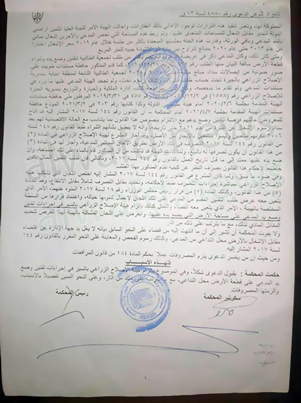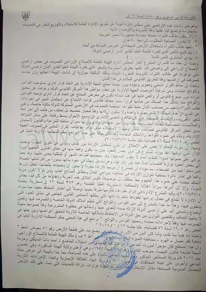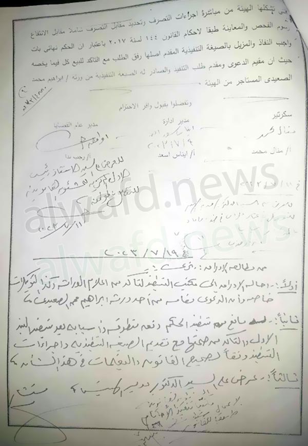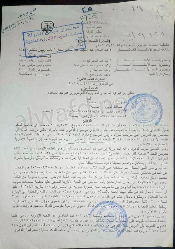 حصلت “الوفد” على نسخة من المستندات الخاصة بالواقعة، بعدما تواصلت مع الأهالي الذين أكدوا بأنهم قبل أن يذهب الأهالي إلى وزارة الزراعة واستصلاح الاراضي كانوا لجأوا إلى محكمة القضاء الإداري والمحكمة الدستورية العليا، التي أثبتت أحقيتهم في تقنين الأراضي التي يعيشون عليها، وبالفعل ذهبوا إلى استصلاح الأراضي بهذه المستندات والأحكام، وقامت وزارة الزراعة بتقنين أوضاعهم، وأصبحت الأرض ملكًا لهم بعد دفع الرسوم المقررة.