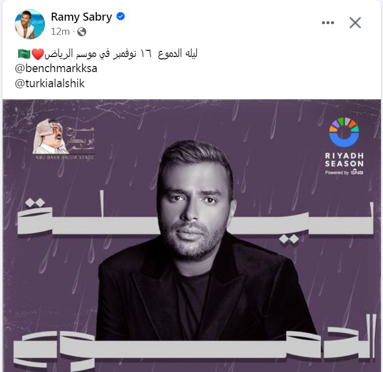 يأتي اللقاء الأول لرامي صبري مع جمهروه بعد سلسلة التأجيلات، من خلال حفل ليلة الدموع الذي روّج عنه عبر صفحاته الرسمية على مواقع التواصل الإجتماعي، ضمن فعاليات موسم الرياض 2023.