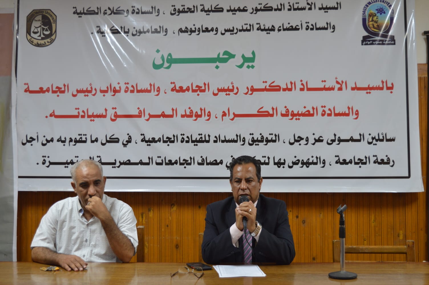 عقد الدكتور محمد رشدى إبراهيم، عميد كلية الحقوق بقنا، اجتماعا بأعضاء هيئة التدريس ومعاونيهم والعاملين بالكلية، لمناقشة التوعية بضرورة المشاركة في الانتخابات الرئاسية.