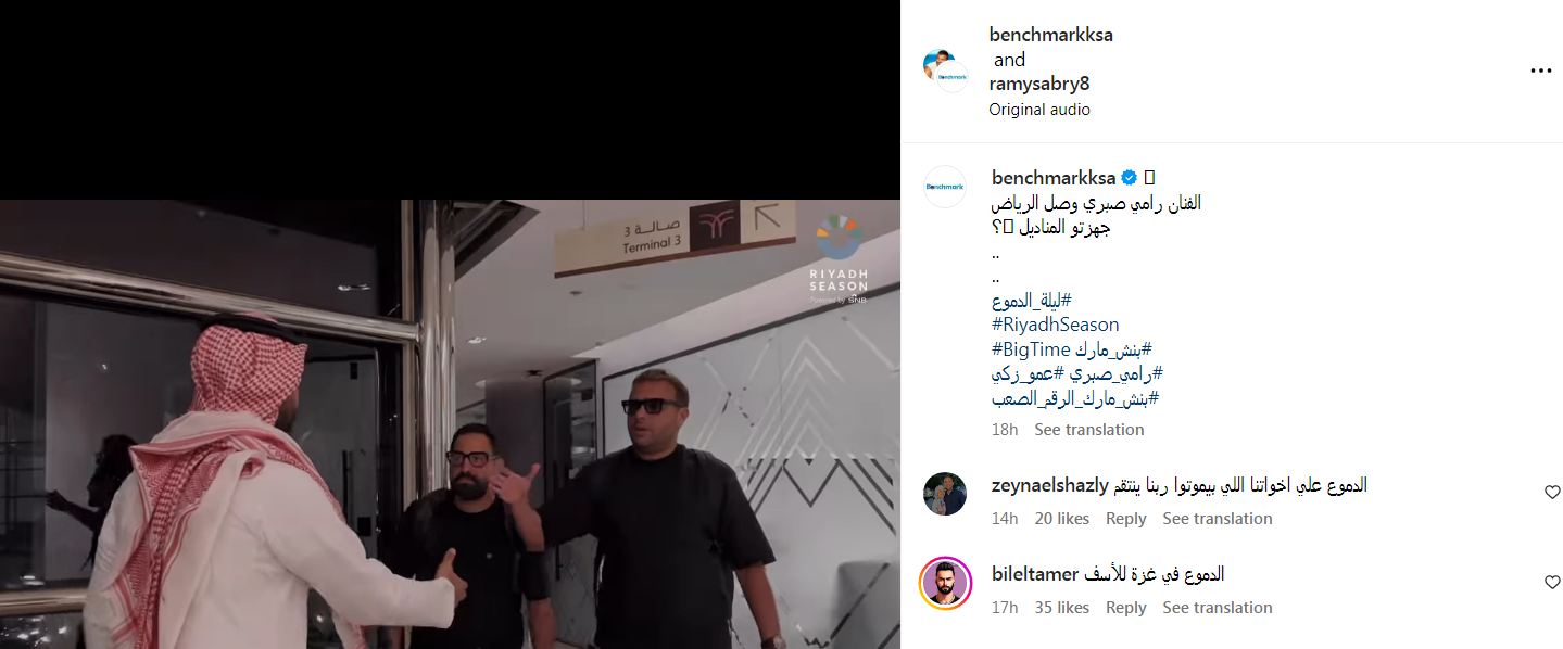 وصل الفنان رامي صبري مساء أمس إلى العاصمة السعودية الرياض استعدادًا للحفل، ونشرت الشركة المنظمة للحفل فيديو استقباله، ونال المقطع سيل من الانتقادات والاستنكارات وذلك عبر التعليقات التي جاءت كالآتي: