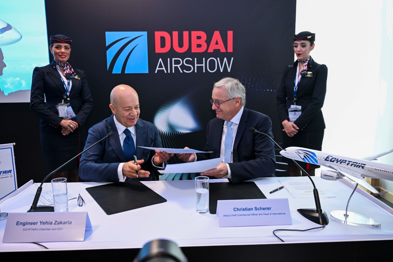 أعلنت مصر للطيران الناقل الوطنى لجمهورية مصر العربية اليوم عن توقيع صفقة جديدة لشراء 10 طائرات من طراز A350-900، وتأتى هذه الصفقة في إطار سعى الناقل الوطنى الدائم لتلبية الطلب المتزايد على النقل الجوي ومنح عملائها أفضل تجربة طيران على شبكة خطوطها الجوية الممتدة فى مختلف أنحاء العالم، حيث تم توقيع الصفقة خلال فعاليات معرض Dubai Airshow 2023، بحضور المهندس يحيى زكريا رئيس الشركة القابضة لمصر للطيران والسيد/ كريستيان شيرير الرئيس التنفيذي لعمليات قطاع الطائرات التجارية بشركة أيرباص.