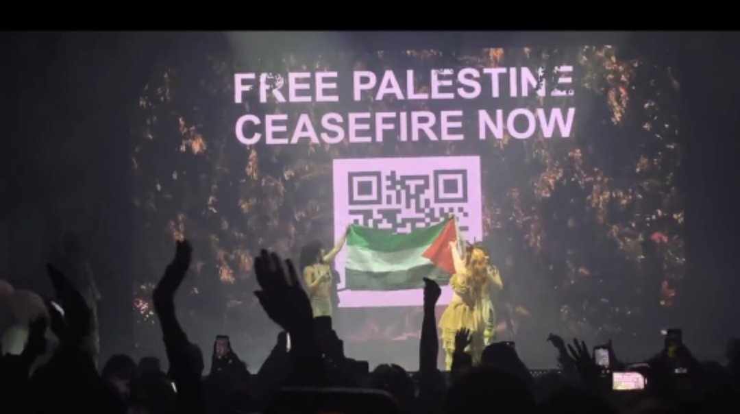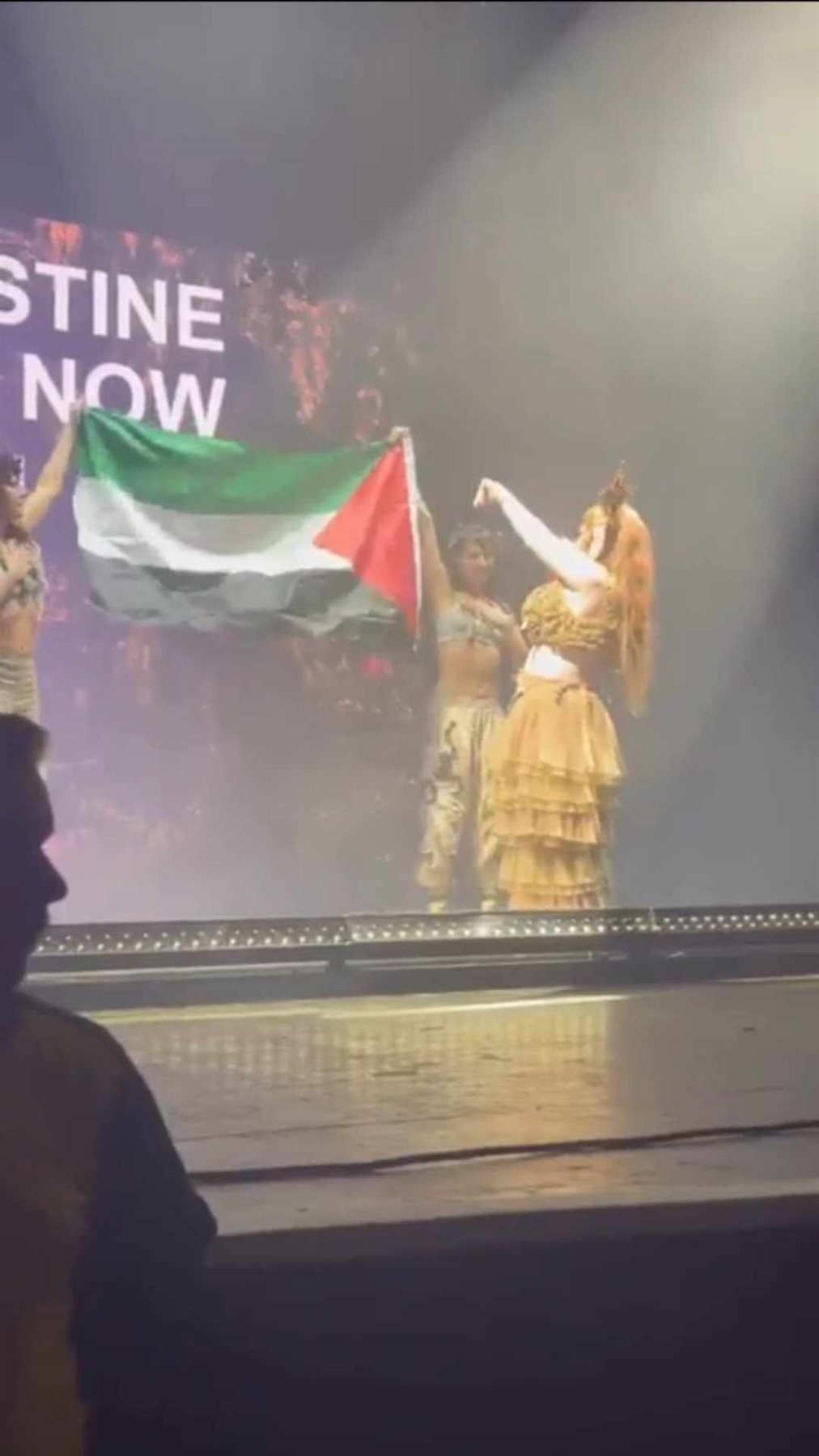 فاجئت المطربة البريطانية ميلاني مارتينيز جمهورها مساء أمس خلال حفلها بمانشستر بتضامنها علنا مع القضية الفلسطينية وذلك برفع العلم الفلسطيني في نهاية الحفل ومطالبتها بوقف القصف.