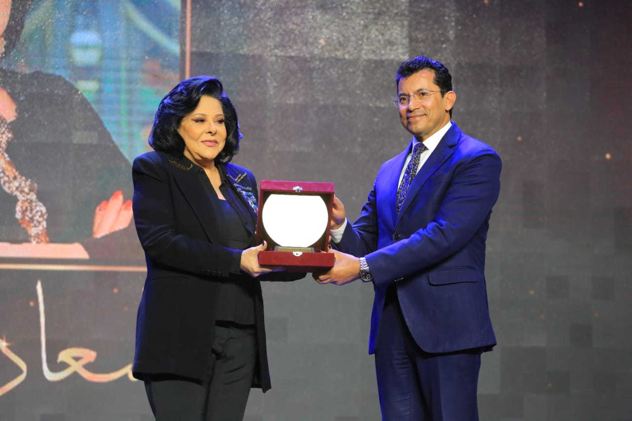 وقال "الدكتور أشرف صبحي:"يسعدني ويشرفني اليوم افتتاح معرض وحفل لتكريم الفائزين في مسابقة إيجي تالنت في وجود القيمة والقامة وأحد أهم علامات الفن المصري، سواء كانت إذاعية أو ممثلة أو منتجة أو مذيعة تليفزيونية، وتكريمها عن مشوارها الفني ودعمها للشباب والمواهب الفنية، وكانت ومازالت مصدراً للبهجة والسعادة الفنانة إسعاد يونس".