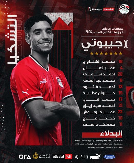 تشكيل منتخب مصر أمام جيبوتي
