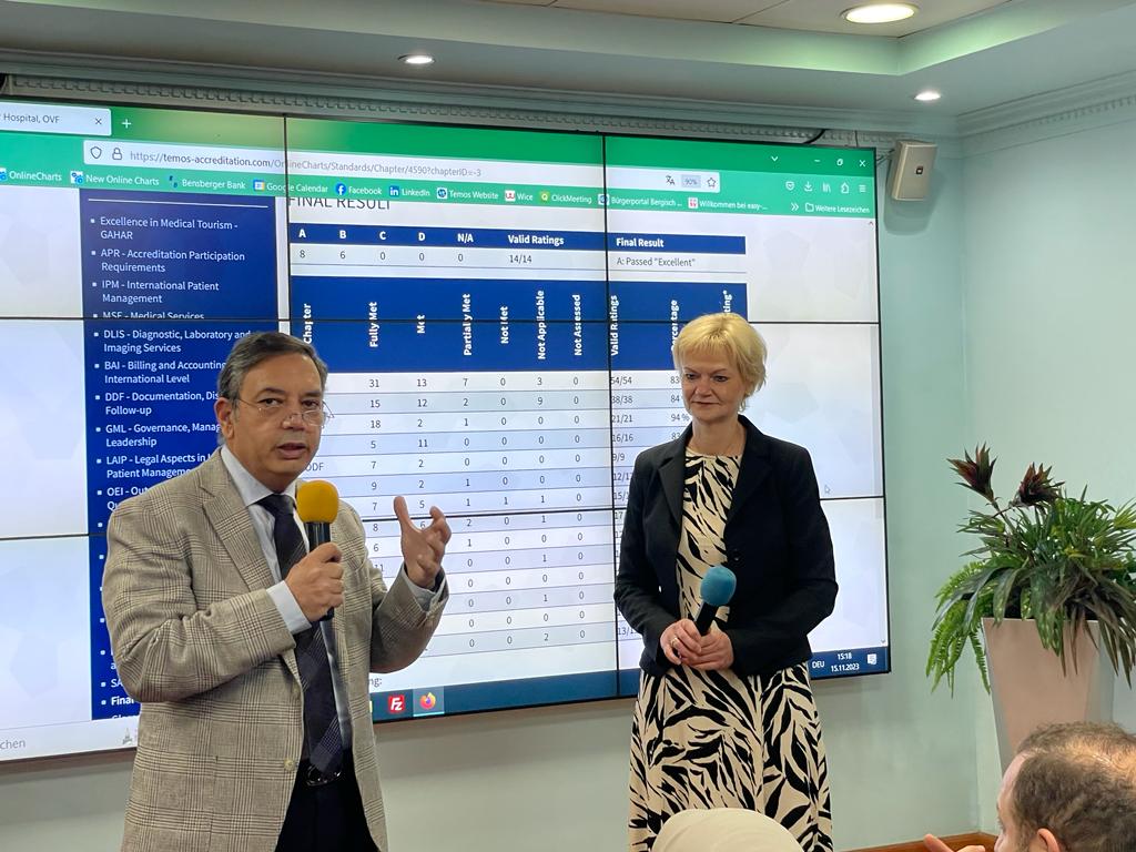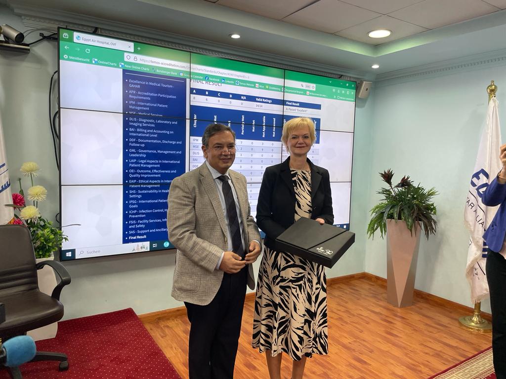 وفى هذا الصدد، صرحت د/كلاوديا ميكا، المدير التنفيذي لهيئة Temos، وهى هيئة دولية متخصصة فى اعتماد المستشفيات والمراكز الصحية، بأن المستشفى نجح وبجدارة في استيفاء المعايير المطلوبة والمعتمدة دوليًا من منظمة الأسكوا، التى تحرص على الالتزام بمعايير جودة الرعاية الصحية وسلامة المرضى وتقديم خدمة مميزة للمرضى الدوليين تحترماختلاف الثقافات والعادات، طريقة التواصل الآمنة، الاستشارات الطبية، تيسير إجراءات السفر والإقامة وخطة العلاج.