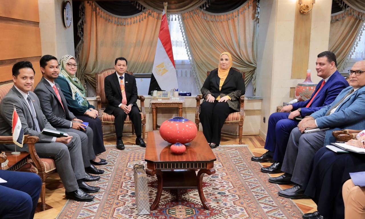 وشهد اللقاء مناقشة تداعيات الأزمة الإنسانية في قطاع غزة، حيث أكدت وزيرة التضامن الاجتماعي على تردي الأوضاع الإنسانية فى قطاع غزة، موضحة الجهود المبذولة من قبل الهلال الأحمر المصري فى سرعة تقديم الخدمات الإغاثية والمساعدات الإنسانية، وأسفرت الجهود المبذولة عن إمداد دفعات متتالية من المساعدات تقرب إلى 9 طن بالتنسيق المباشر مع الشركاء في 27 دولة وحوالي 16 منظمة دولية.