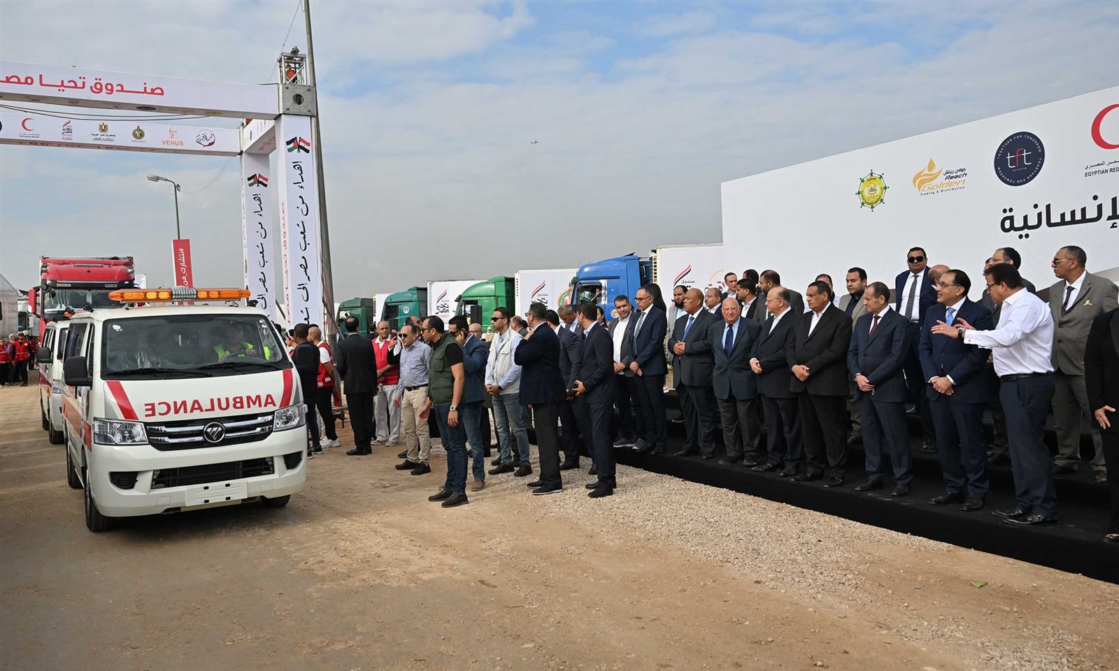 وخلال كلمته، أشار رئيس مجلس الوزراء إلى أن القافلة تتكون من أكثر من 190 شاحنة، وتحمل أكثر من 2500 طن من المساعدات لأهالينا فى غزة، لافتًا إلى أن الظرف الإنساني الذي يعاني منه أهالي غزة حاليًا، كان محفزًا لمختلف أبناء الشعب المصري، وكذا المؤسسات المصرية، لتنطلق بأقصى قدراتها لتقديم المساعدات لأهالينا وأشقائنا فى قطاع غزة.