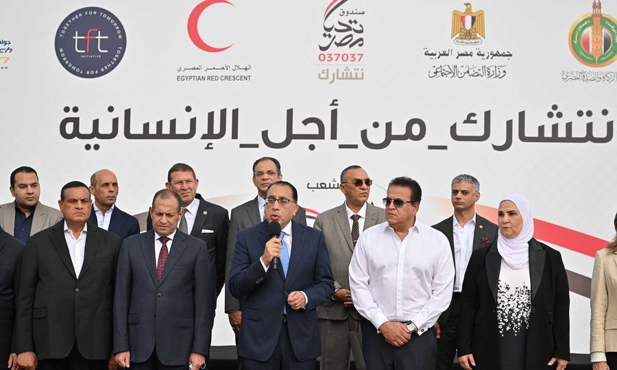 ألقى الدكتور مصطفى مدبولي، رئيس مجلس الوزراء، كلمة خلال فعاليات إطلاق أكبر قافلة مساعدات إغاثية وإنسانية شاملة لدعم الأشقاء الفلسطينيين بقطاع غزة، التى تأتي تنفيذًا لتوجيهات السيد الرئيس عبد الفتاح السيسي، رئيس الجمهورية، ويديرها وينظمها صندوق "تحيا مصر".