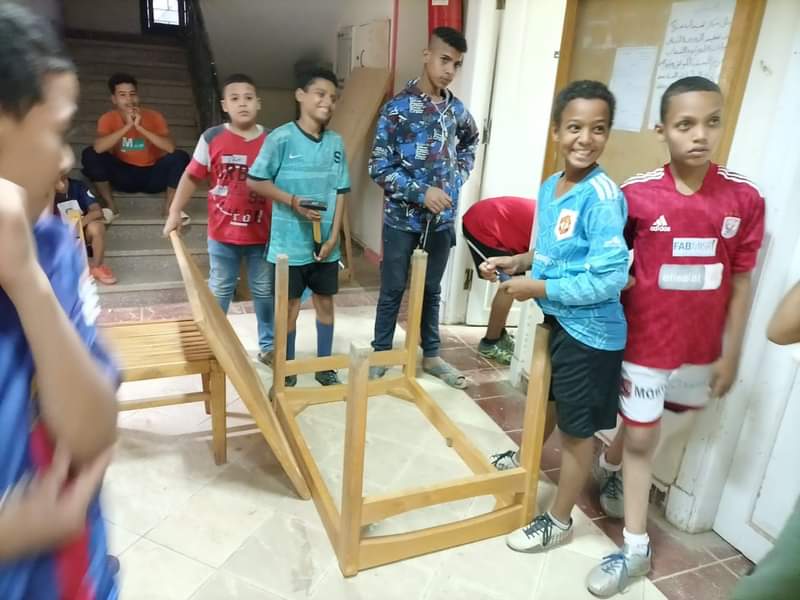 تم تقسيم المشاركين إلي مجموعات لكل مجموعة أدوار محددة فمنهم من قام بأعمال إصلاح لكراسي وترابيزات المركز بمساعدة من مدير الهيئة ومنهم من قام بتقليم الأشجار ونظافة أماكن التقليم ومنهم من قام بالاهتمام بملعب النجيل الصناعي وحرصوا على نظافته لحبهم في ممارسة كرة القدم، وكذلك تعاونهم في إصلاح شباك ملعب النجيل من خلال سد الفتحات الواسعة بها، وفي نهاية اليوم أعرب جميع المشاركين عن سعادتهم في إنجاز الأعمال التطوعية المطلوبة منهم.