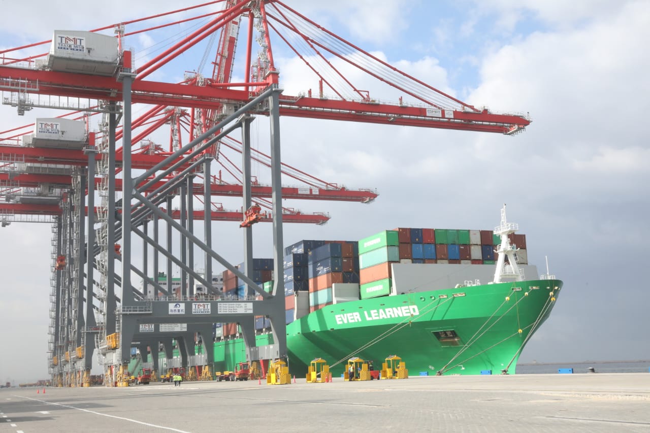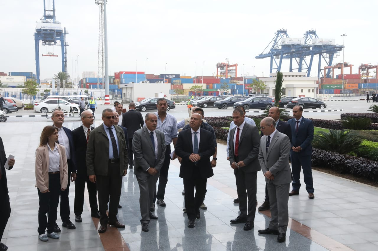 وزير النقل يتفقد محطة تحيا مصر متعددة الأغراض ويشهد استقبال وتفريغ السفينة EVER LEARNED