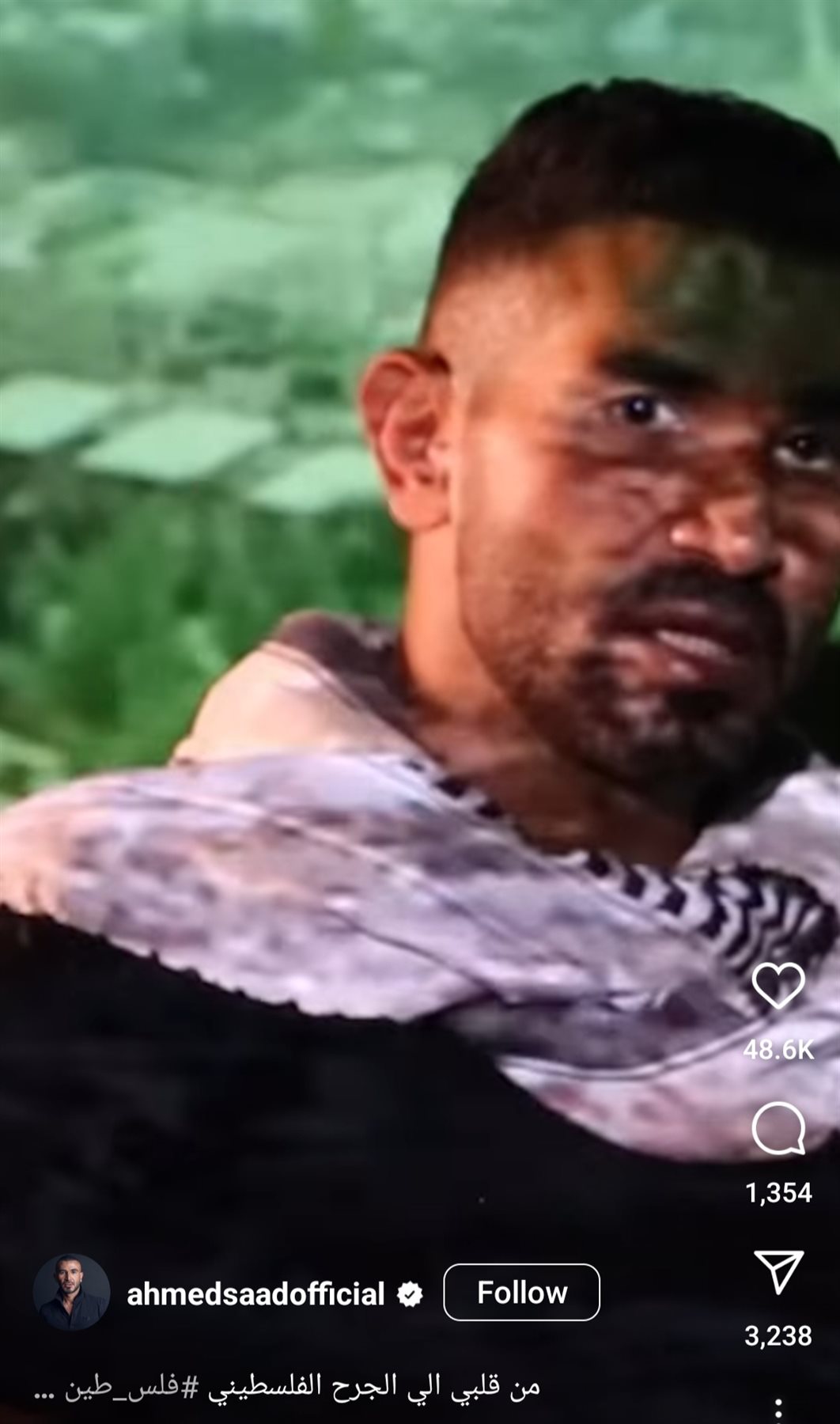 ونشر سعد الأغنية، عبر حسابه الرسمي بموقع الصور والفيديوهات "إنستجرام"، وعلق: "من قلبي إلى الجرح الفلسطيني، غصن الزيتون".