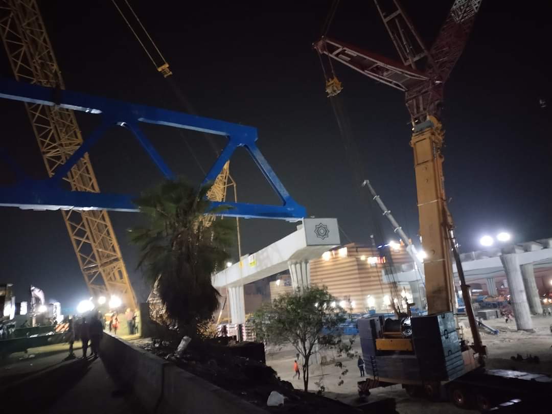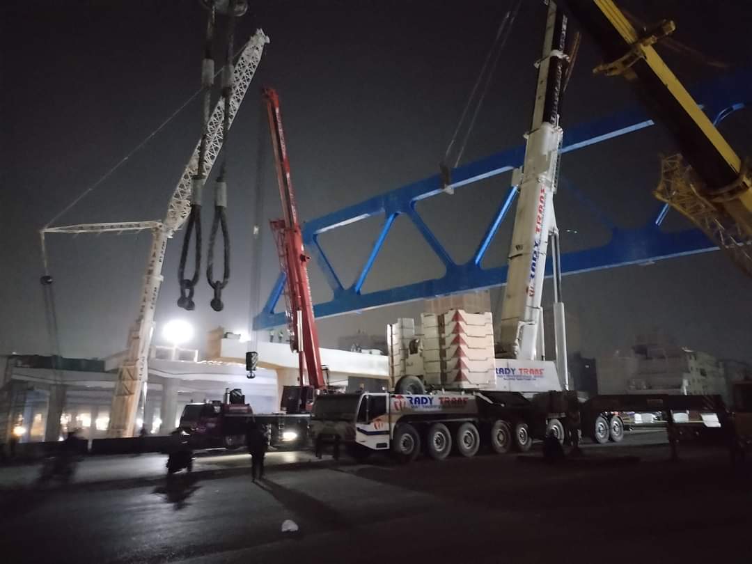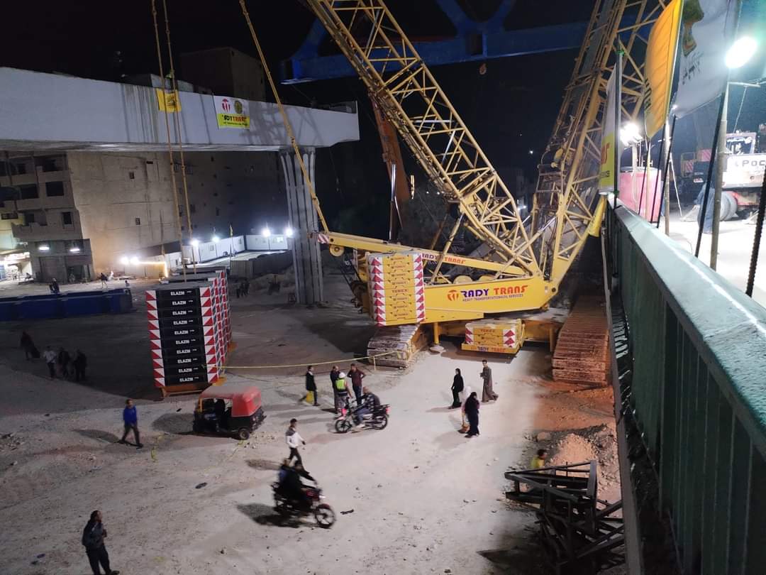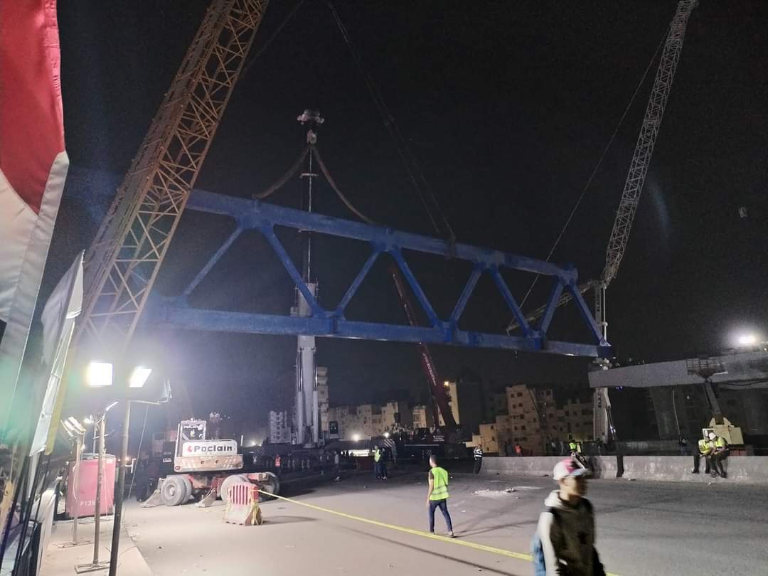 وذلك للقيام بتركيب الكمر الحديدي الخاص بمحور البراجيل الجديد، ومشروع تطوير وتوسعة الطريق الدائري، بمنطقة البراجيل بمحافظة الجيزة.