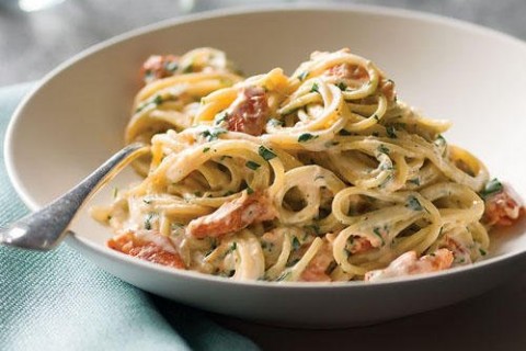طريقة عمل مكرونة مع السلمون وبيستو صوص